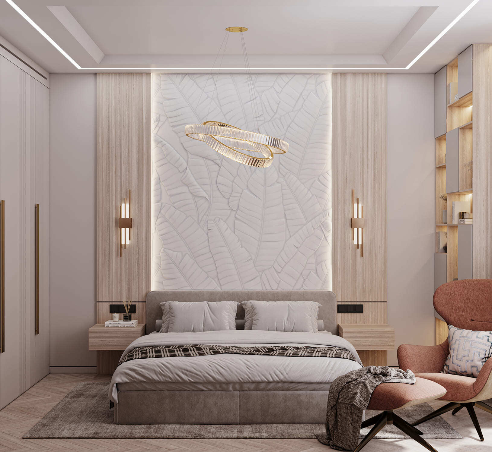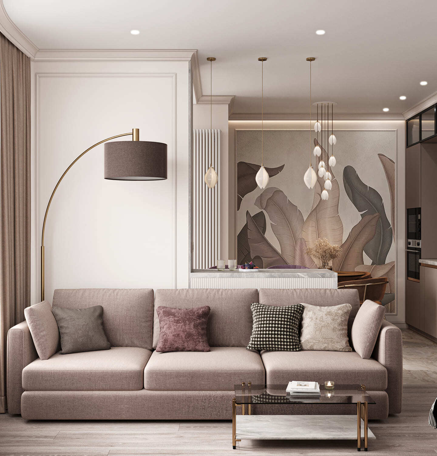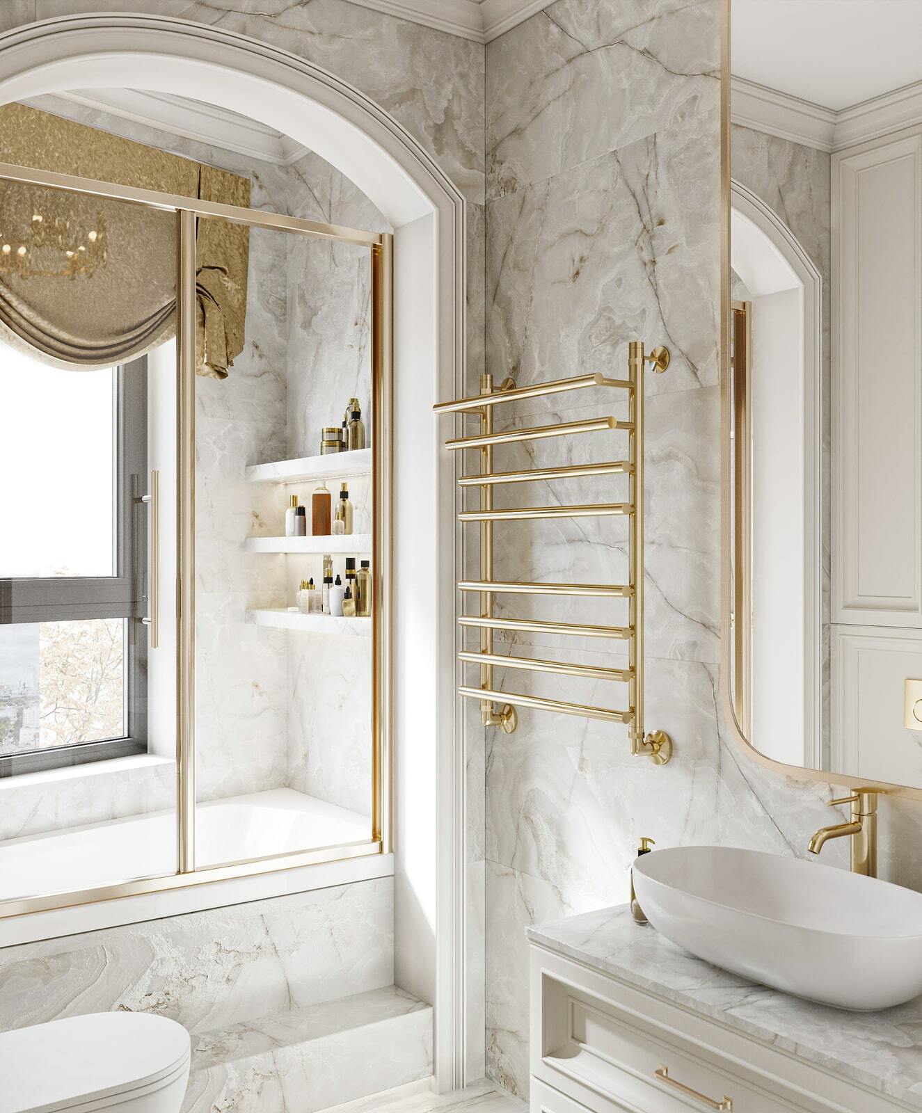 Шикарные апартаменты в стиле неоклассика. Гармония и колорит, выраженные в оригинальном сочетании медных, персиковых, белых и золотых оттенков. Магадан. 81 кв. м.