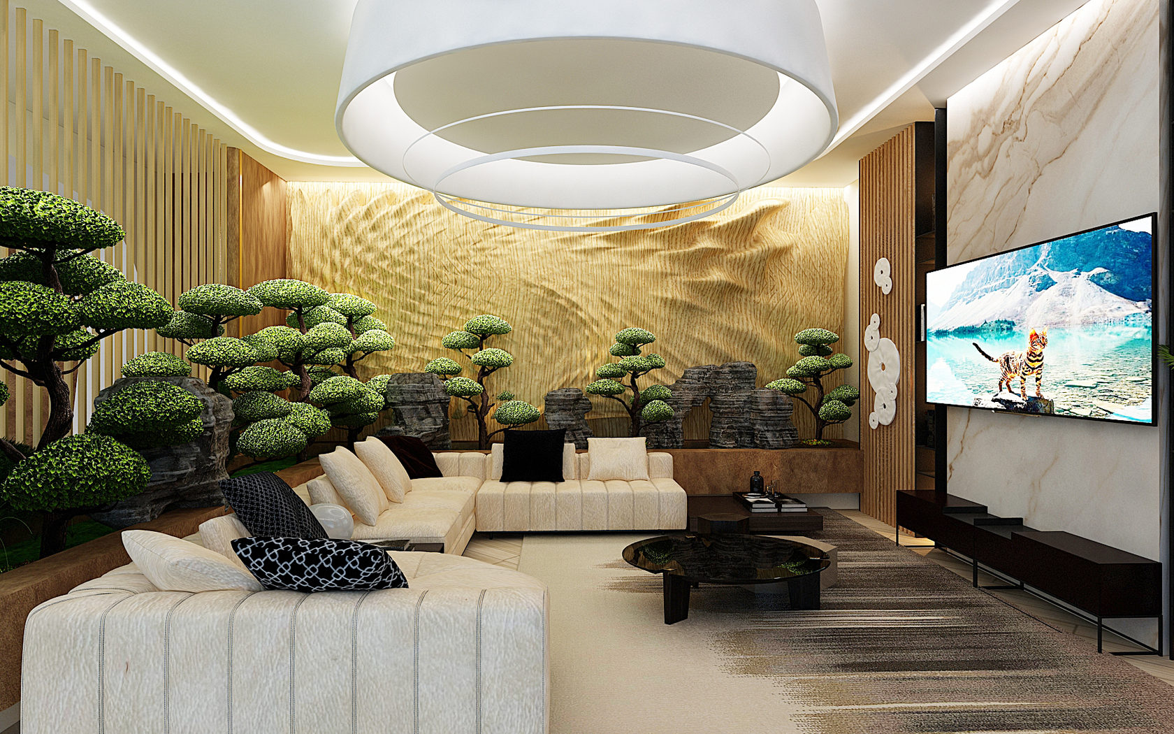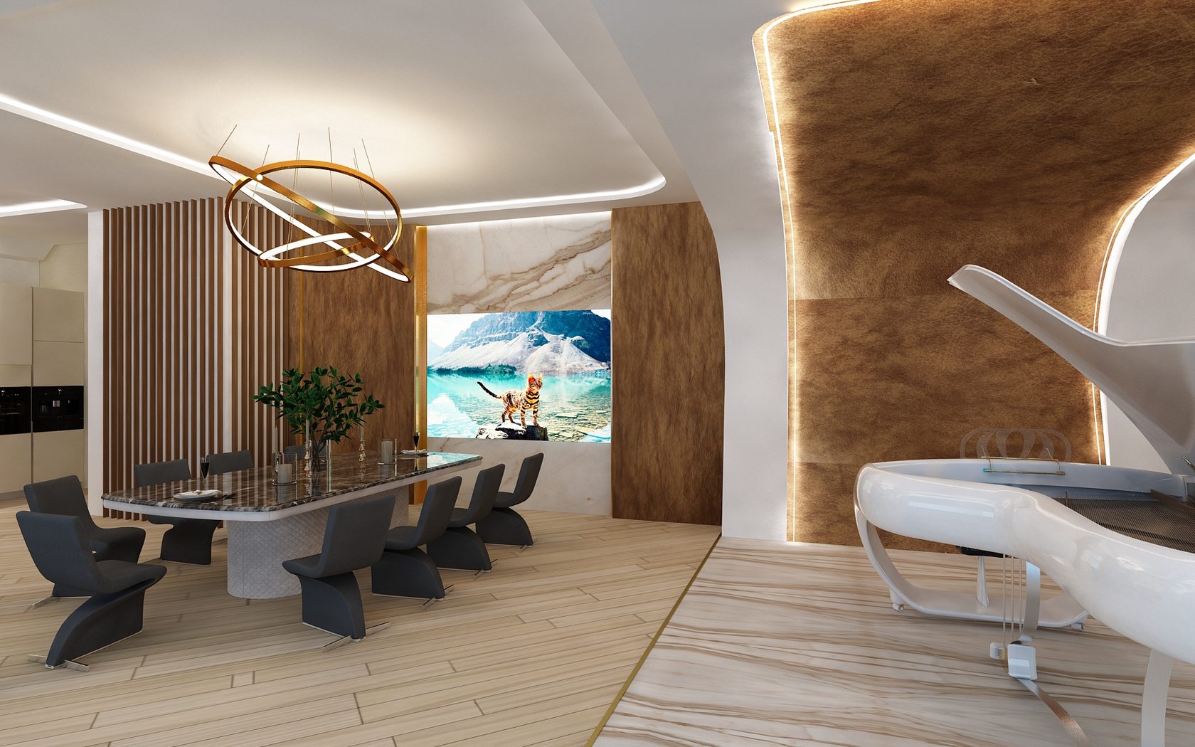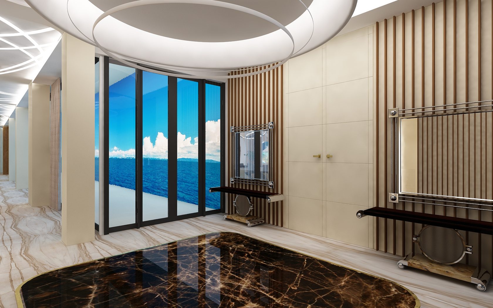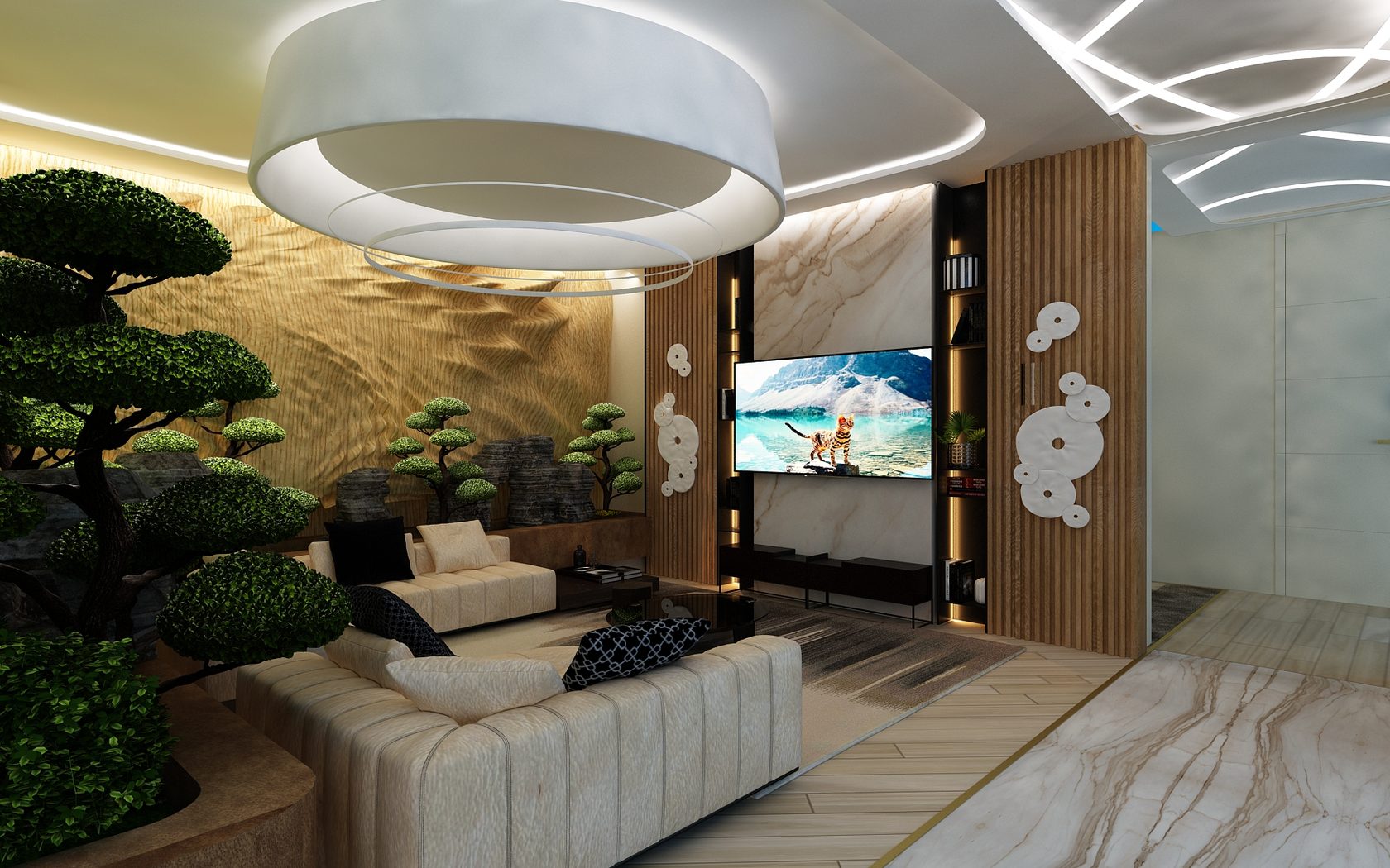 Изысканный, футуристичный концепт виллы с плавными линиями, мрамором, авторскими светильниками и собственным «японским садом». Из окон открывается панорамный вид на море. Алупка. 3000 кв.м.