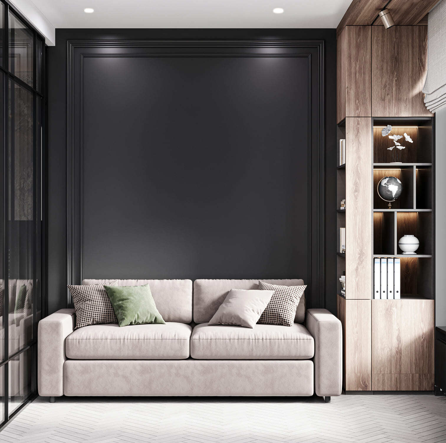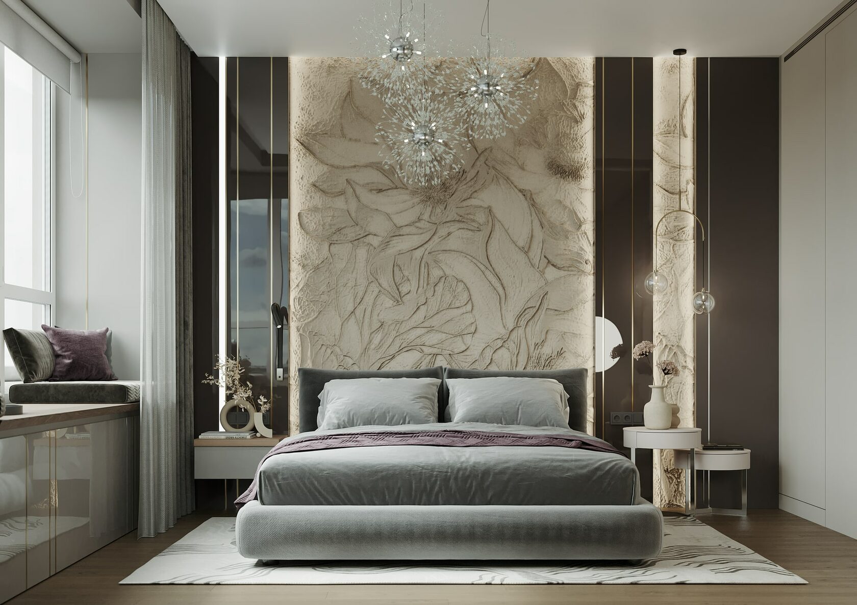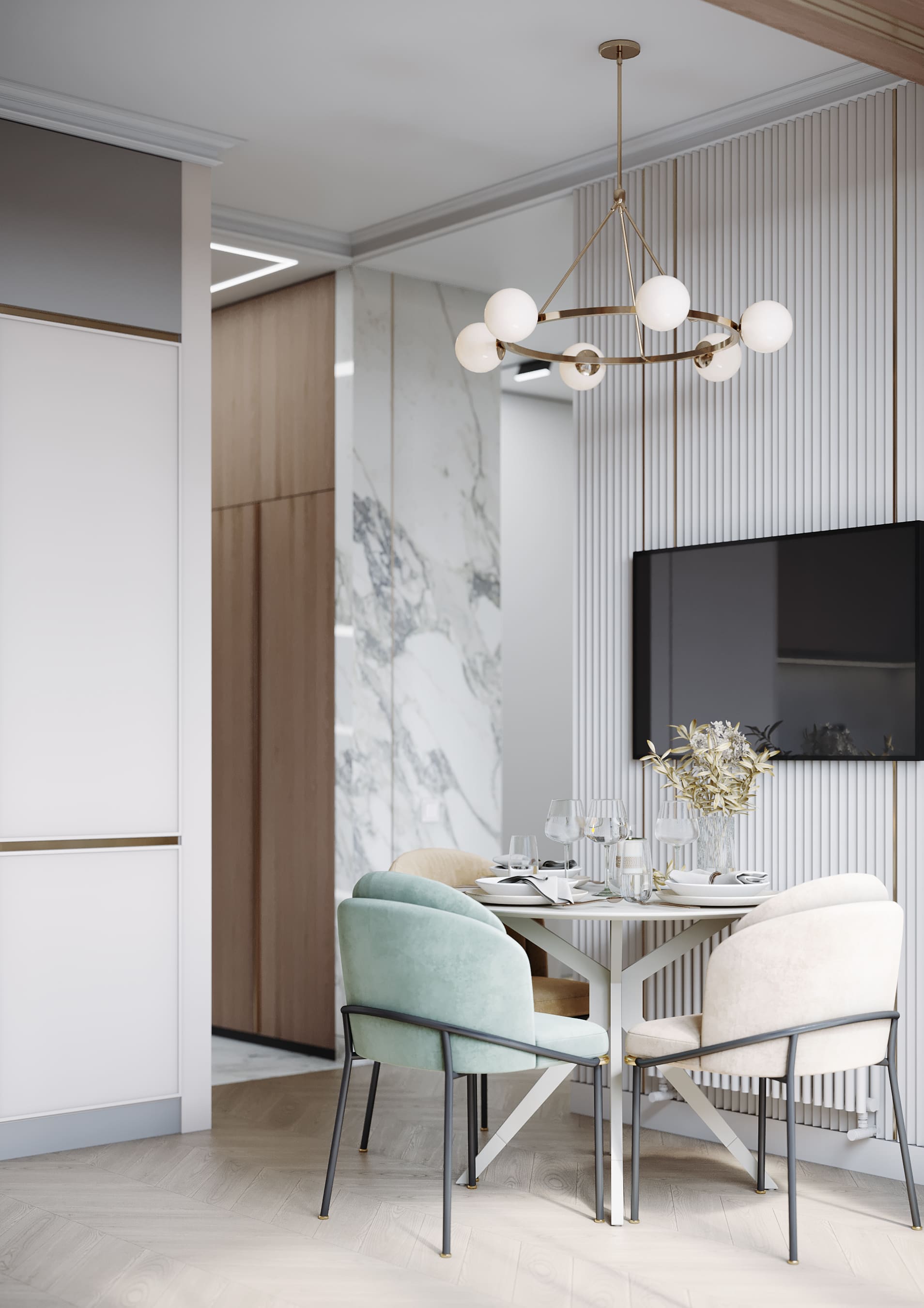 Дизайн-проект декорирования интерьера с готовой отделкой от застройщика. Квартира для молодоженов с шикарным видом на Дмитровский парк. Москва. 78 кв.м.
