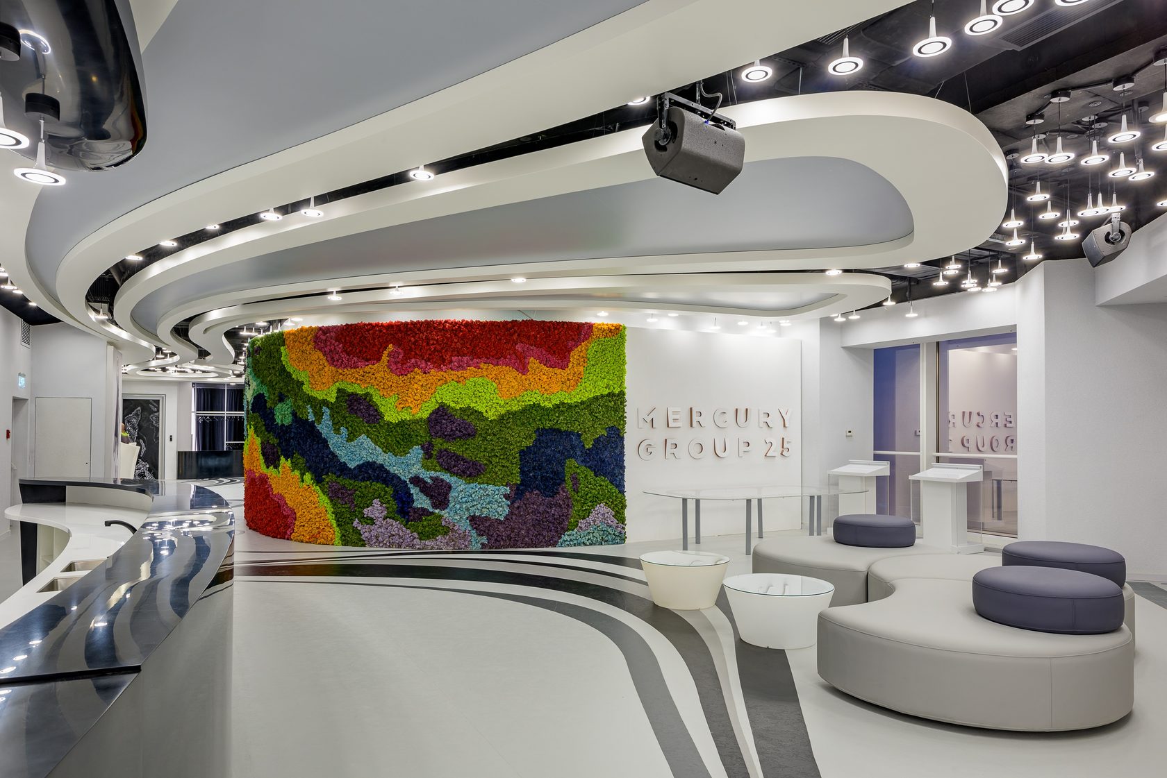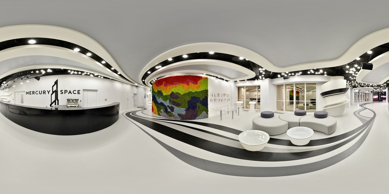 Лучший общественный интерьер для проведения мероприятий в Европе по версии International Property Awards. Футуристичный дизайн в чёрно-белой гамме. Прообраз – космический корабль. Москва. 980 кв. м.