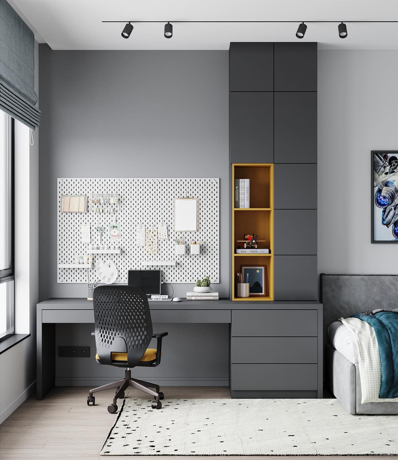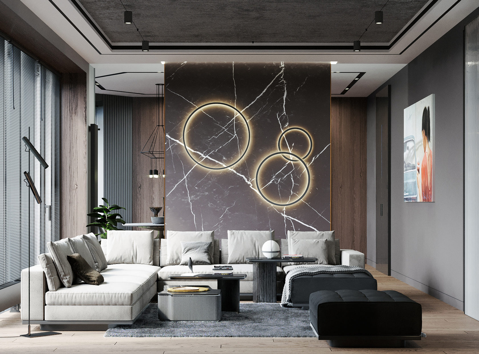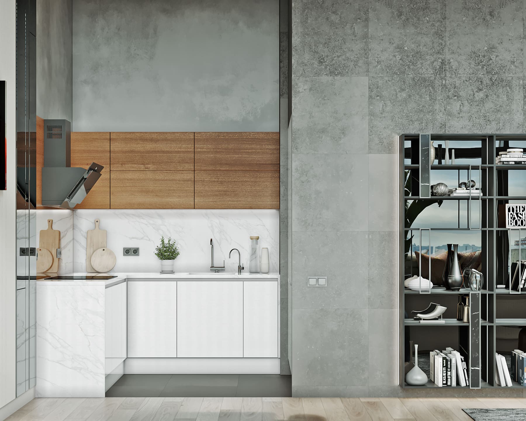 Уникальная квартира в стиле «Современный лофт» для молодого и целеустремленного холостяка. Цветовая гамма в стилистике 50 оттенков серого с утонченными элементами из редкого черного мрамора. Москва. 74 кв. м.