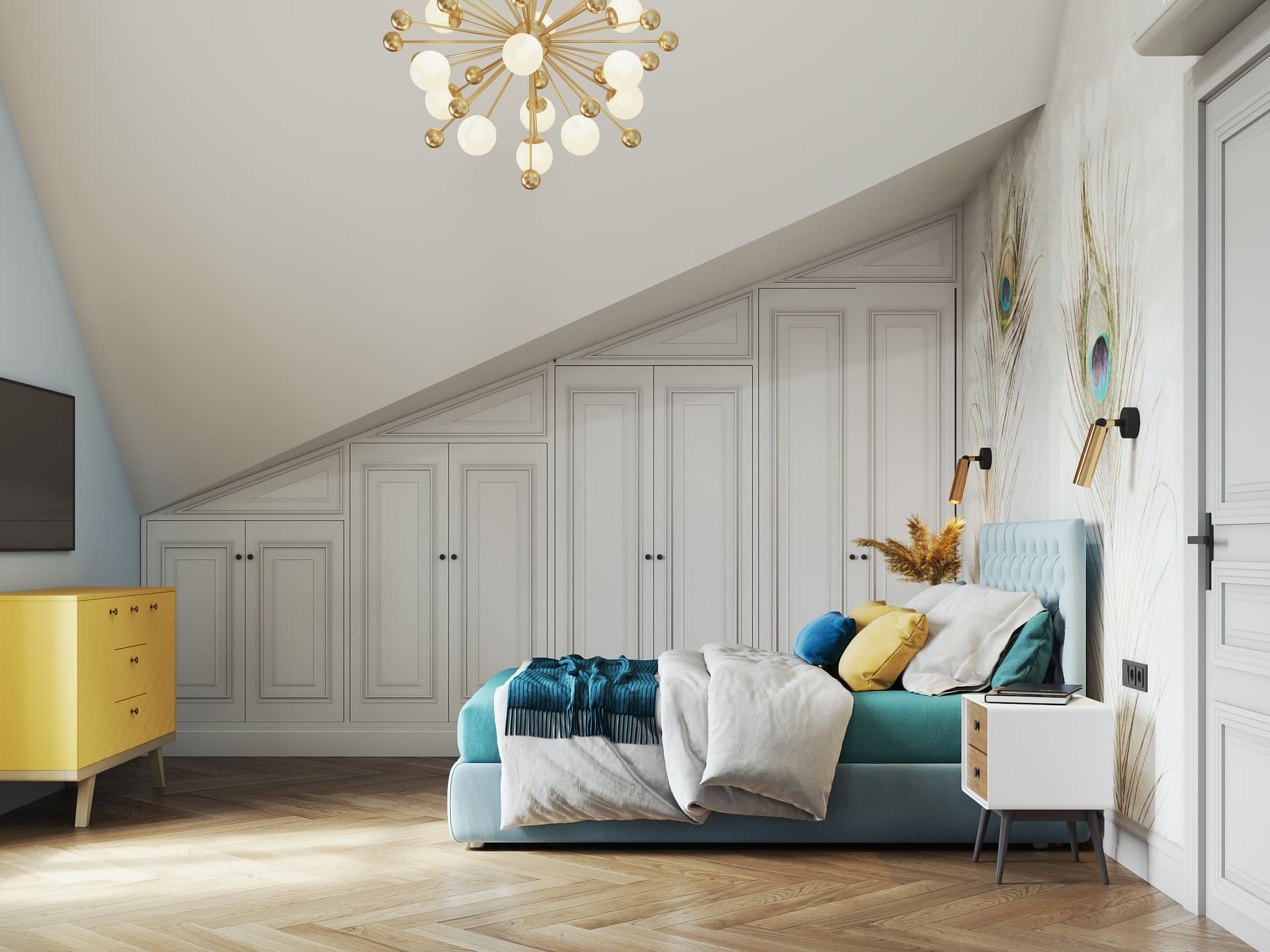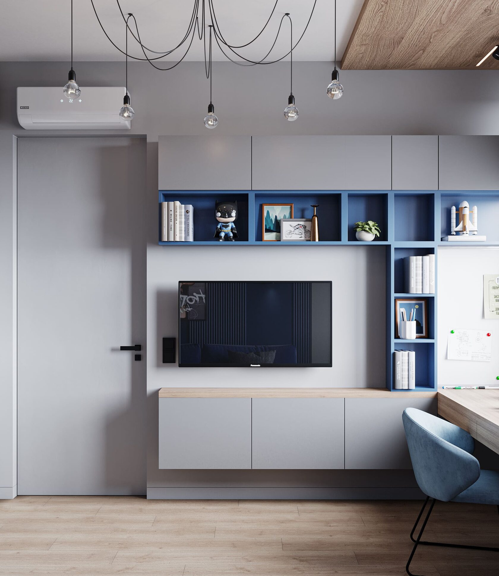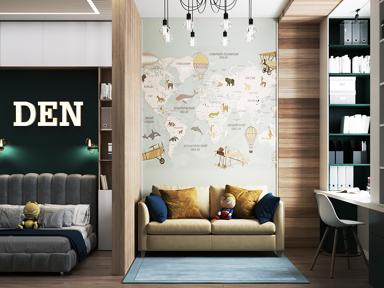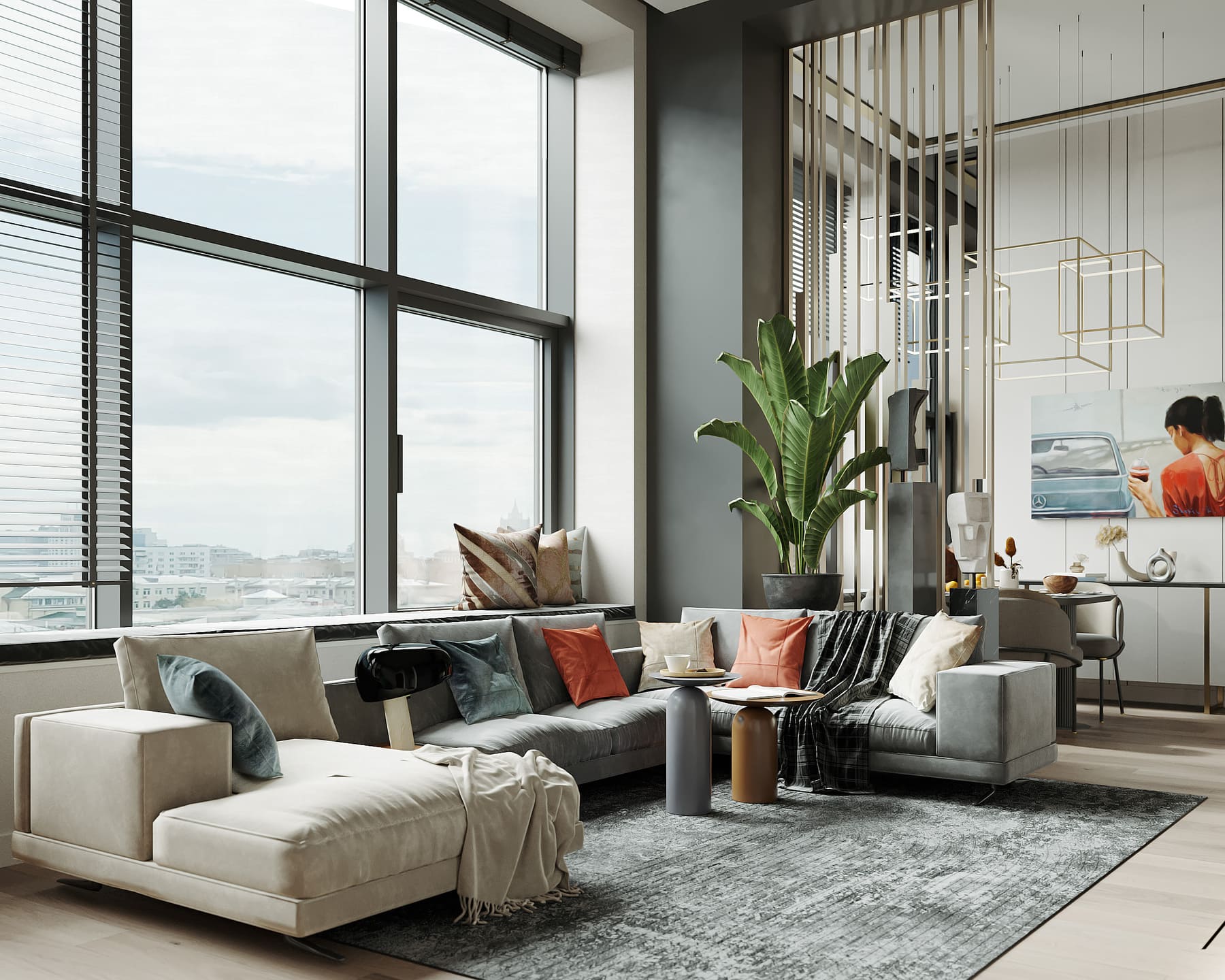 Яркая, идеально геометрически выверенная квартира для семьи из двух взрослых и двух дочерей с оригинальной дизайнерской люстрой и собственной «тропической» ванной комнатой. Москва. 100 кв. м
