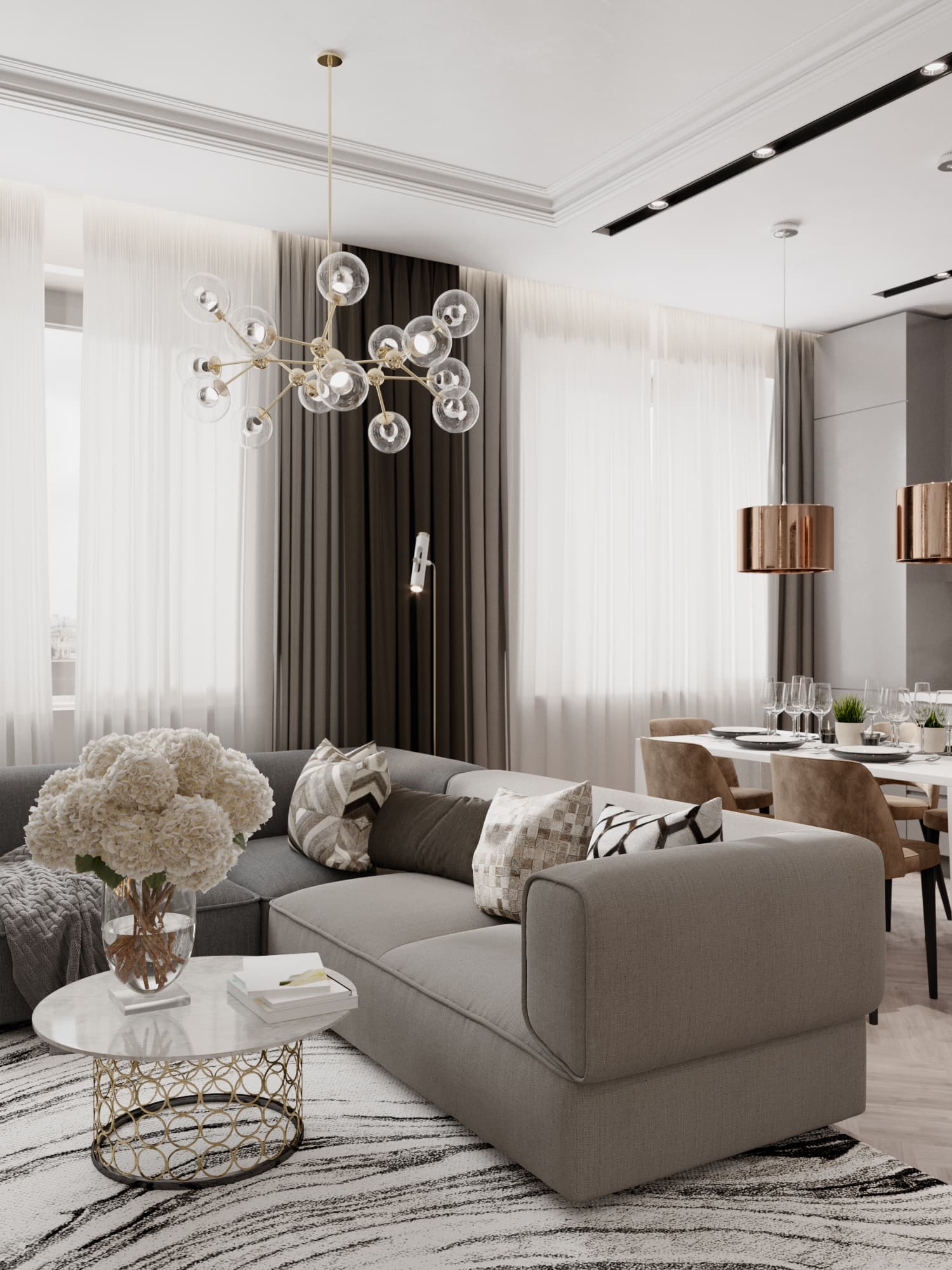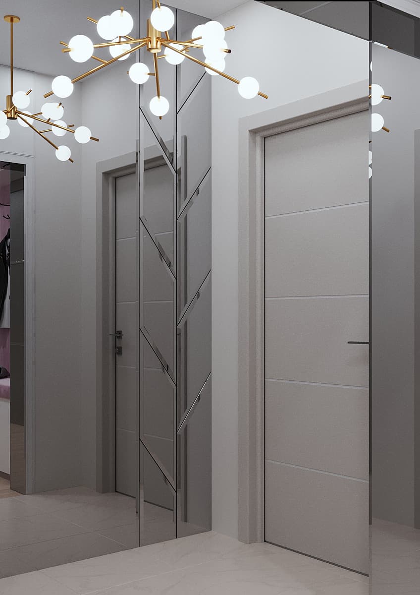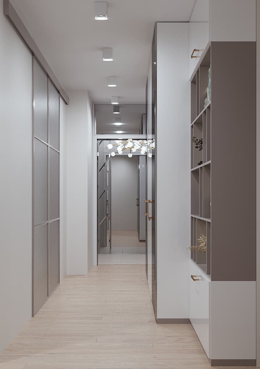 Особенностью данной квартиры были низкие потолки. Именно поэтому за счёт грамотных дизайнерских приёмов нам удалось визуально расширить общее пространство.