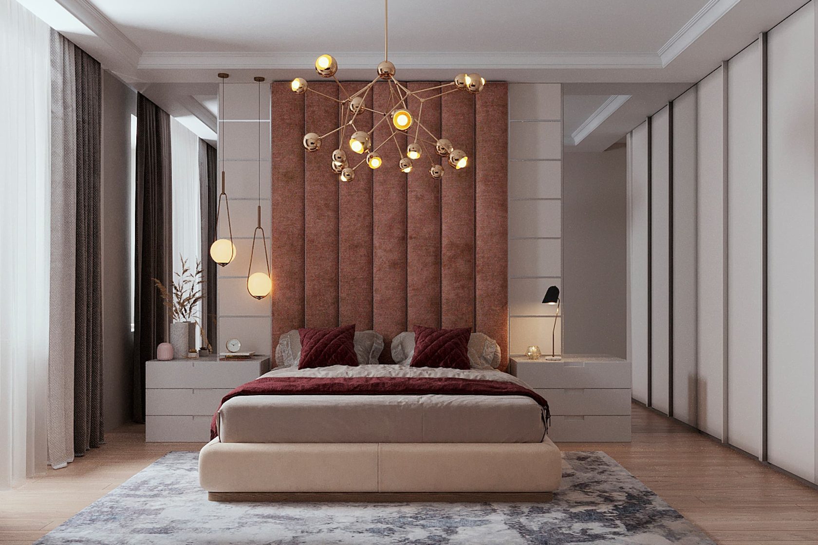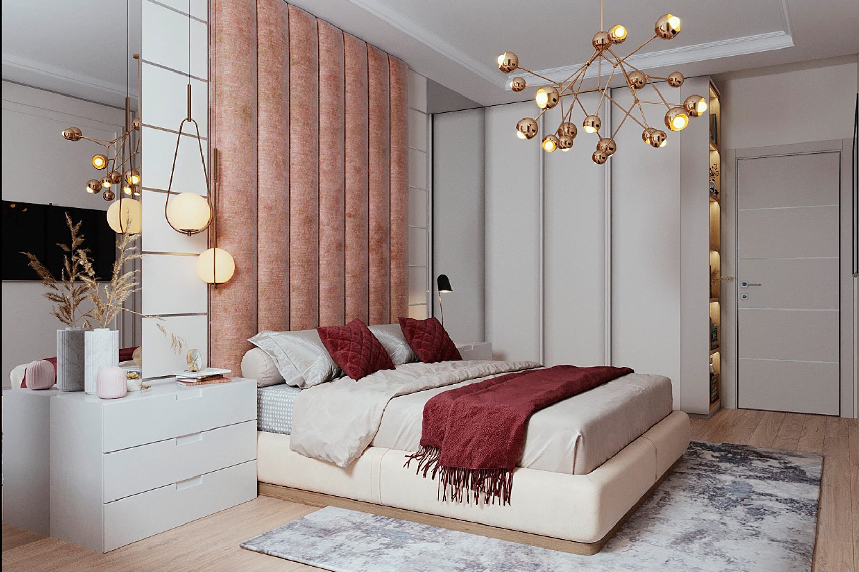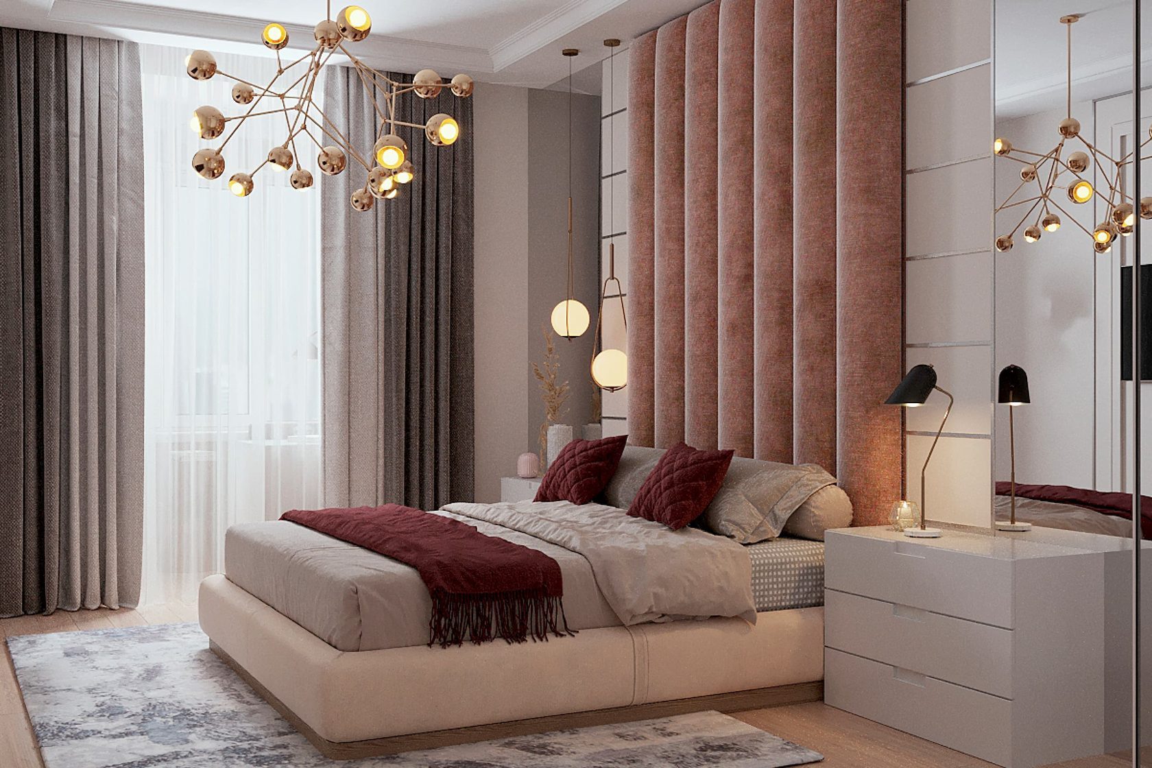 Синонимом нежности и «ламповости» стал и интерьер спальни. Винные, бежевые оттенки ассоциируются с умиротворенностью. Телесные оттенки помогают нейтрализовать негативные эмоции и погрузить в некий комфортный мир, в котором хочется оставаться, как можно дольше.