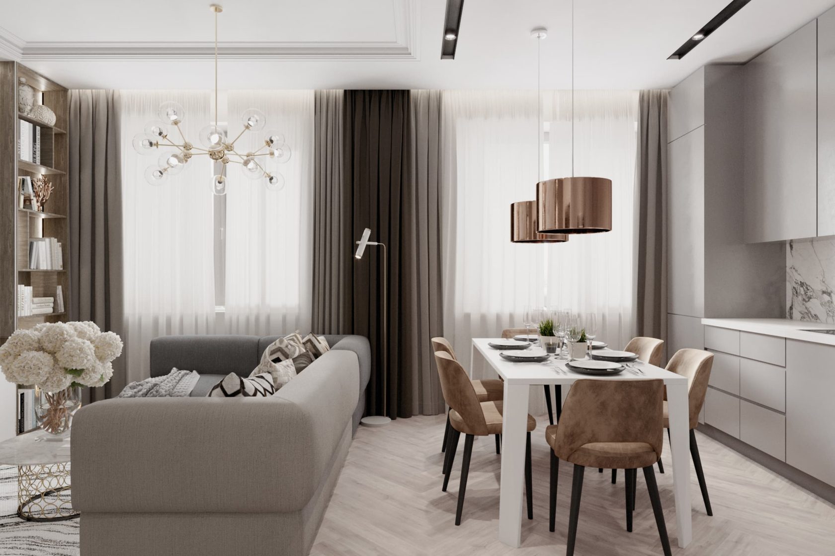 Мягкость и воздушность, ощущаемая практически на кончиках пальцев — так можно охарактеризовать наш оригинальный дизайн-проект магаданских двухкомнатных апартаментов для семьи из двух человек.