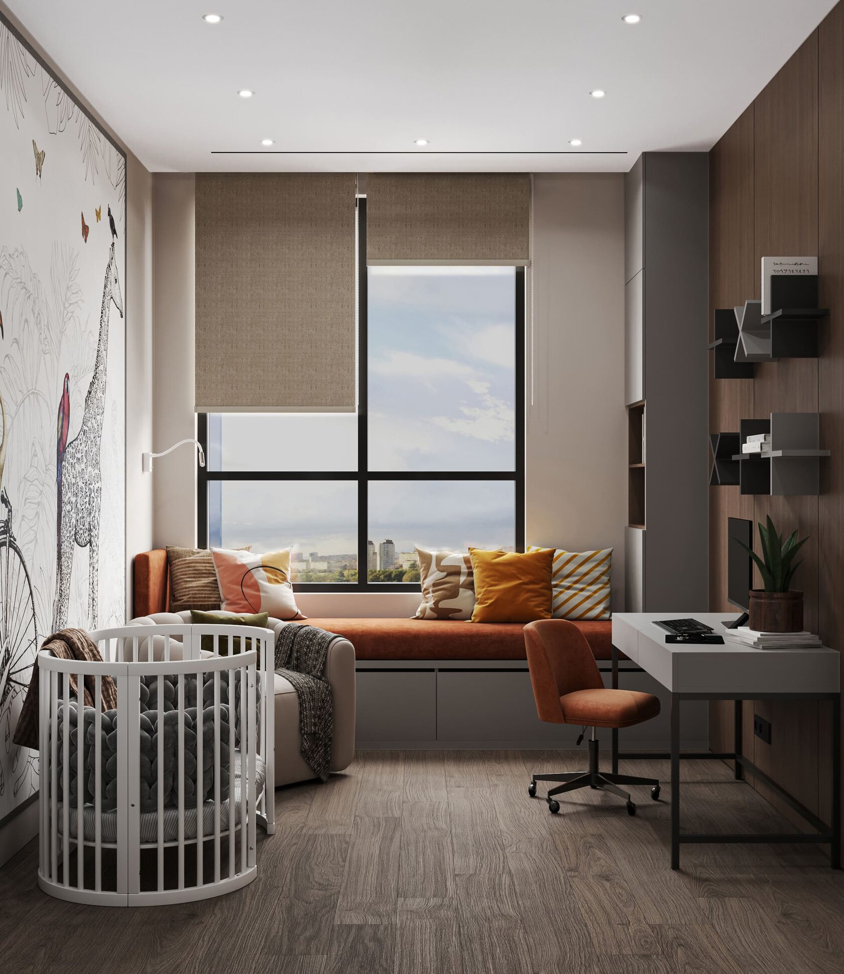 В детской по традиции запланировали банкетку по окном, чтобы любоваться шикарным видом из окна.