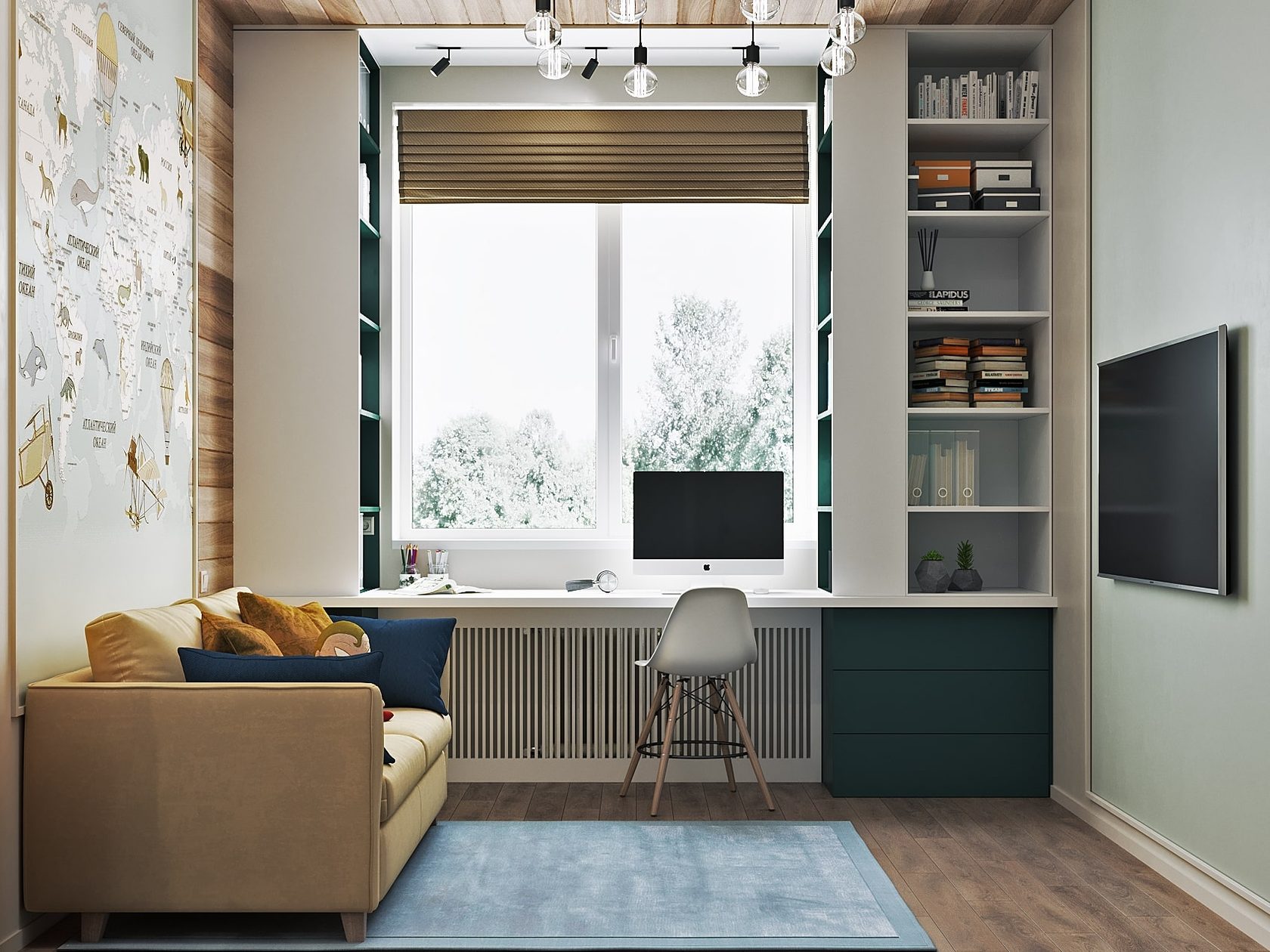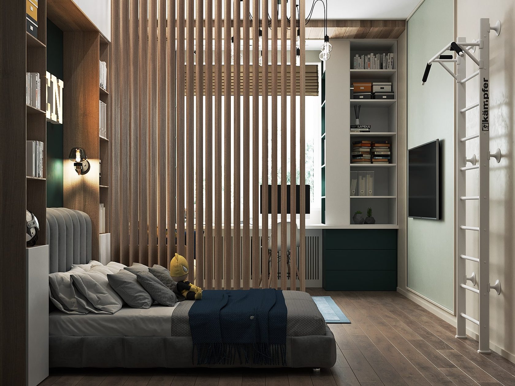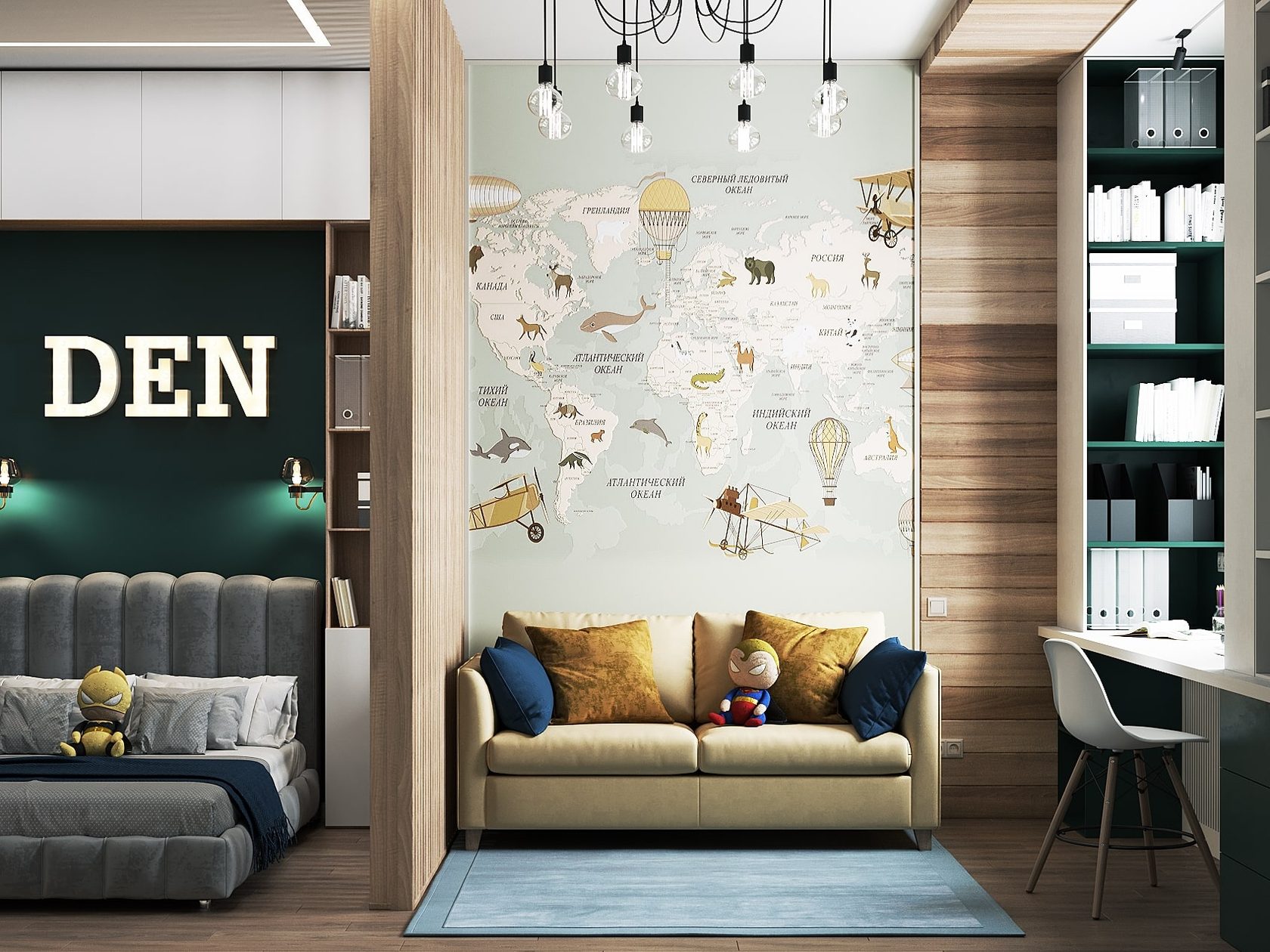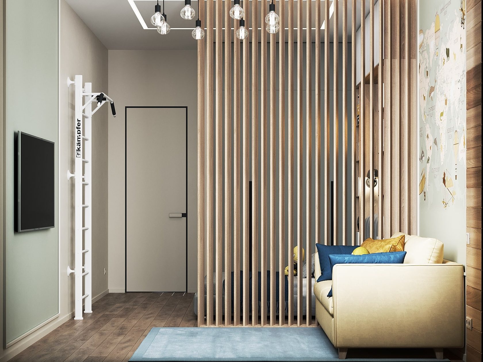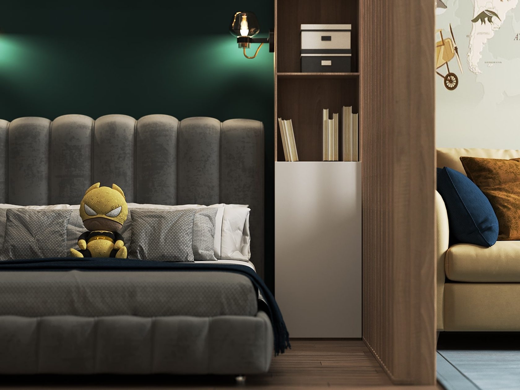 Наконец, детская — тоже молочный шоколад, но уже с разными яркими «наполнителями». От фисташкового до нуги или пралине из фундука. В результате, интерьер квартиры получился максимально «вкусным» и запоминающимся для всех домочадцев.