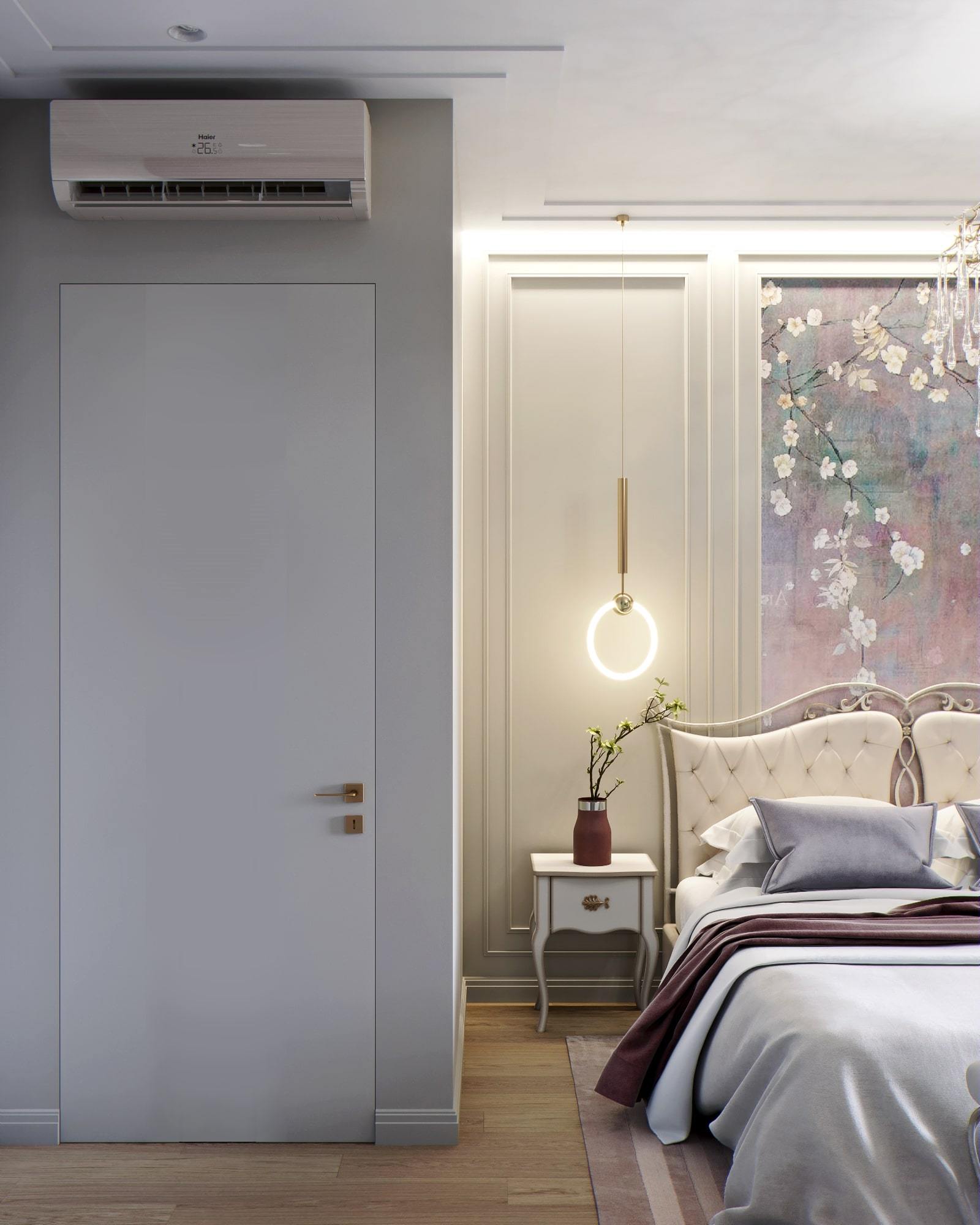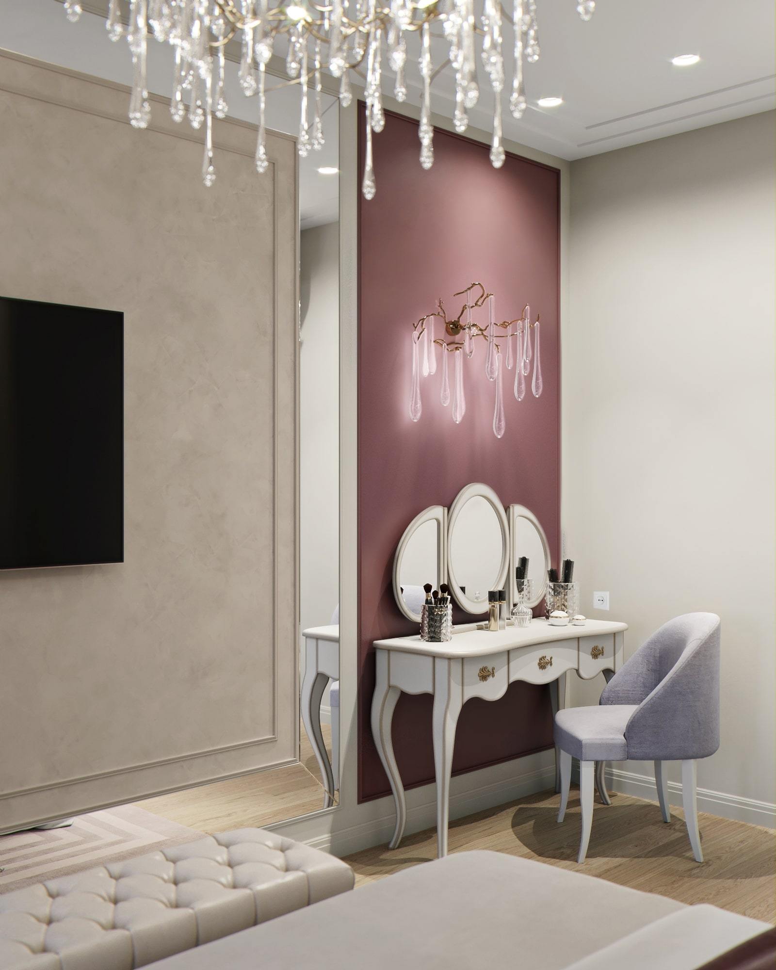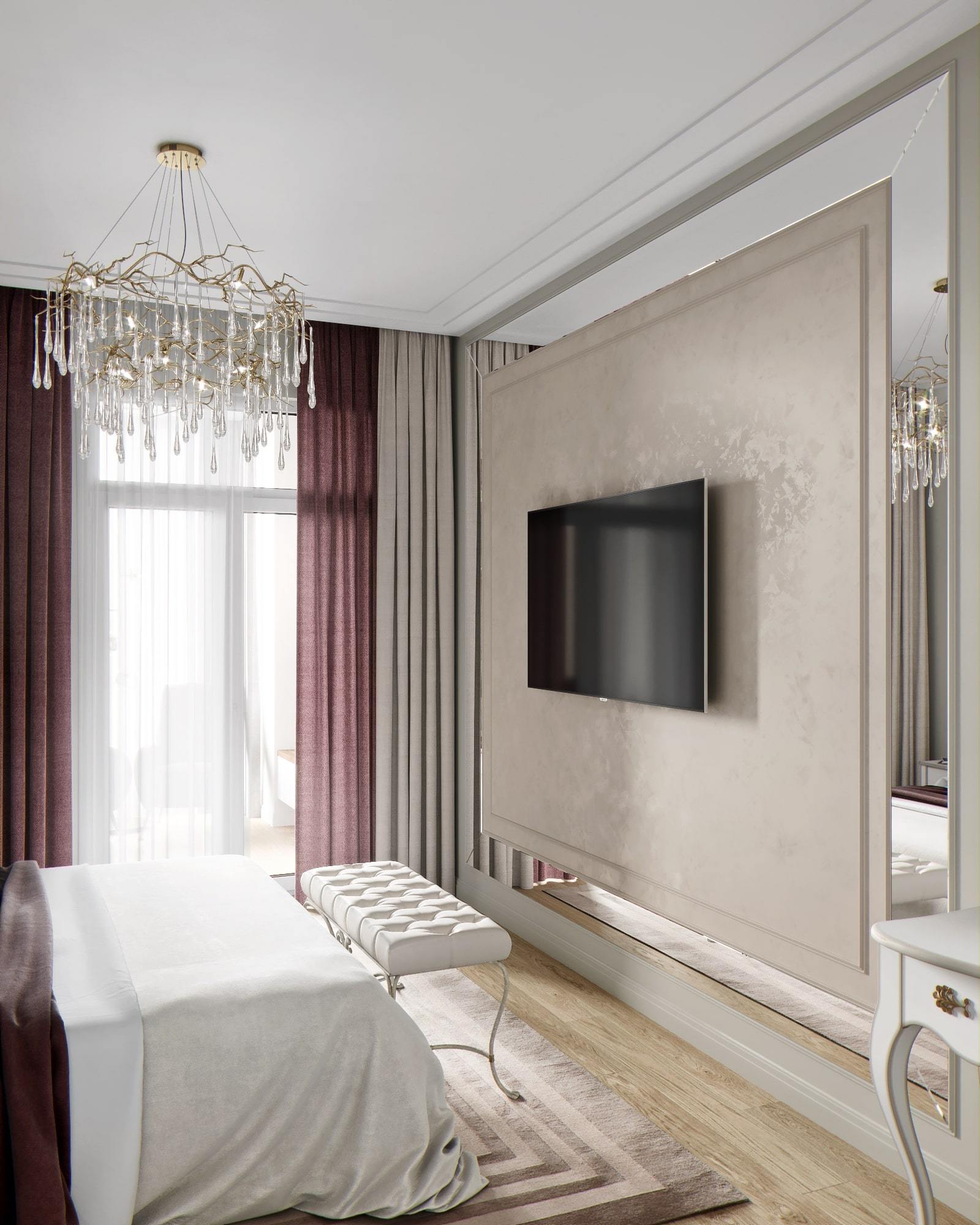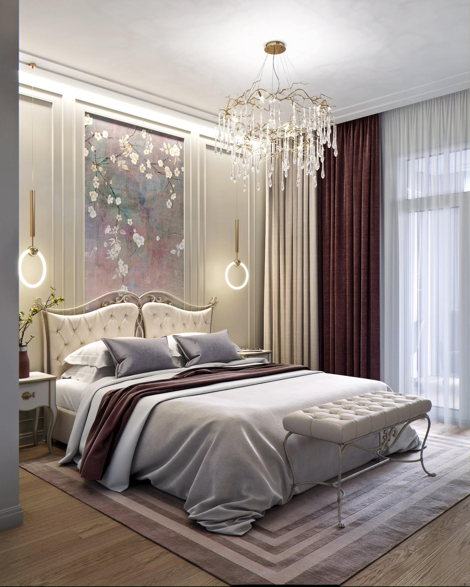 Если кухня и гостиная — это горький шоколад, то спальня — классический молочный, белый. Алые, светло-бежевые оттенки создают необходимый контраст с остальными зонами квартиры, придают должную долю интимности и камерности.