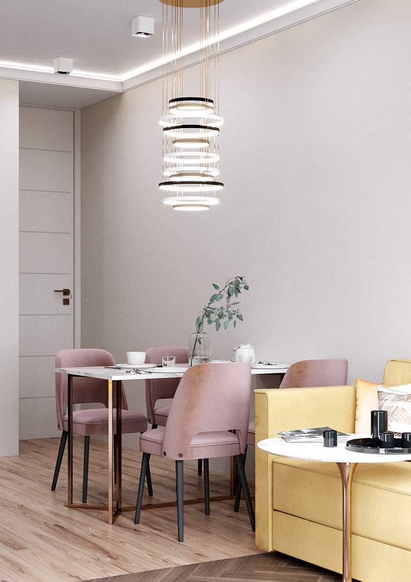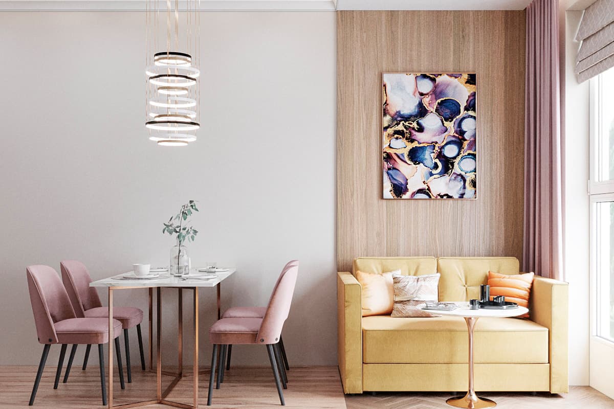 Дизайн-проект квартиры в ЖК «Да Винчи» (г. Одинцово) мы совместно с нашими клиентами решили воплотить, основываясь как раз на естественности, нативности, гармоничности. Подсмотрели, так сказать, у природы. При этом оригинальные цветовые и технические решения мы грамотно «упаковали» в стиль фьюжн (смесь современного, арт-деко и классики) — это именно то, что и хотела хозяйка будущей квартиры.
