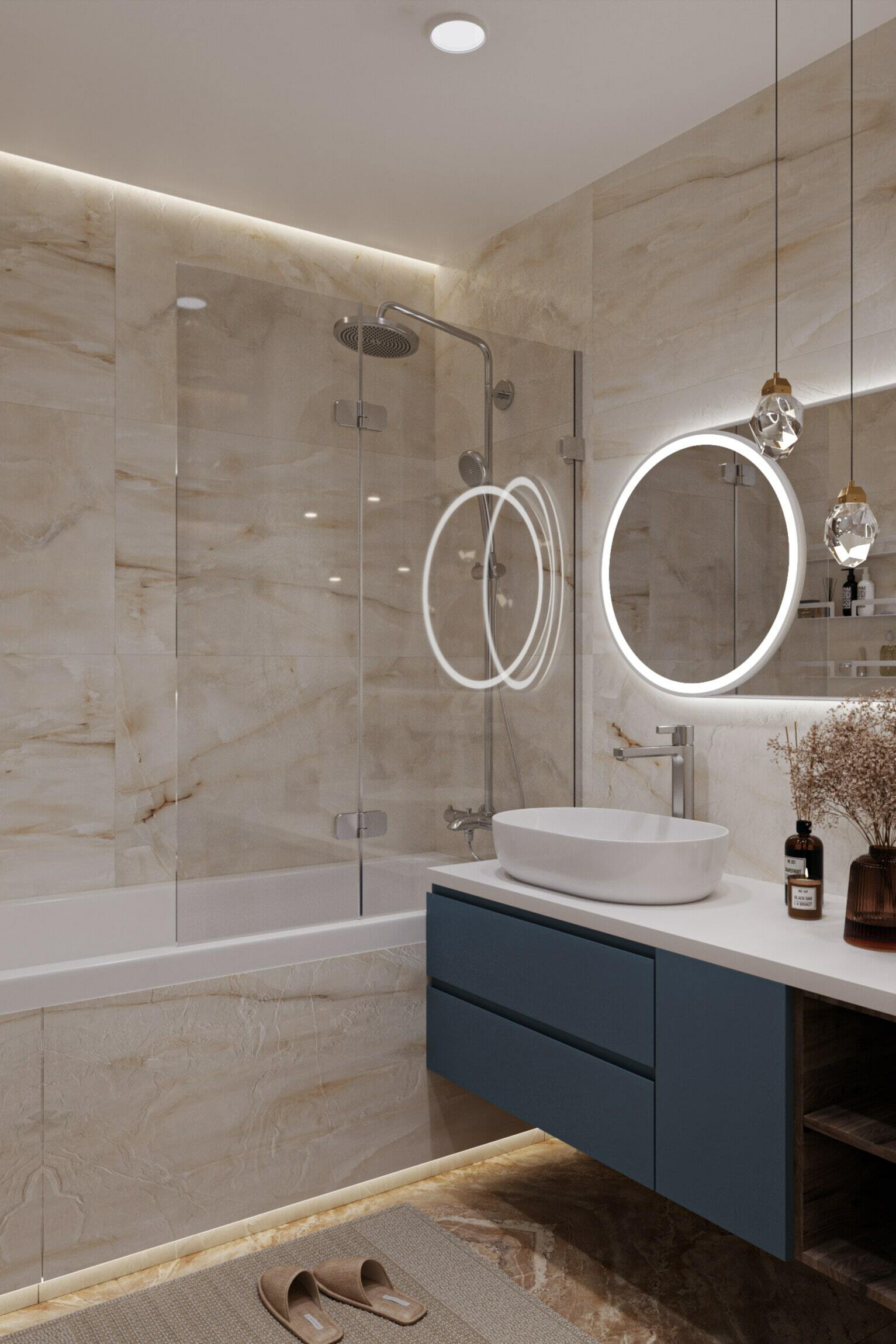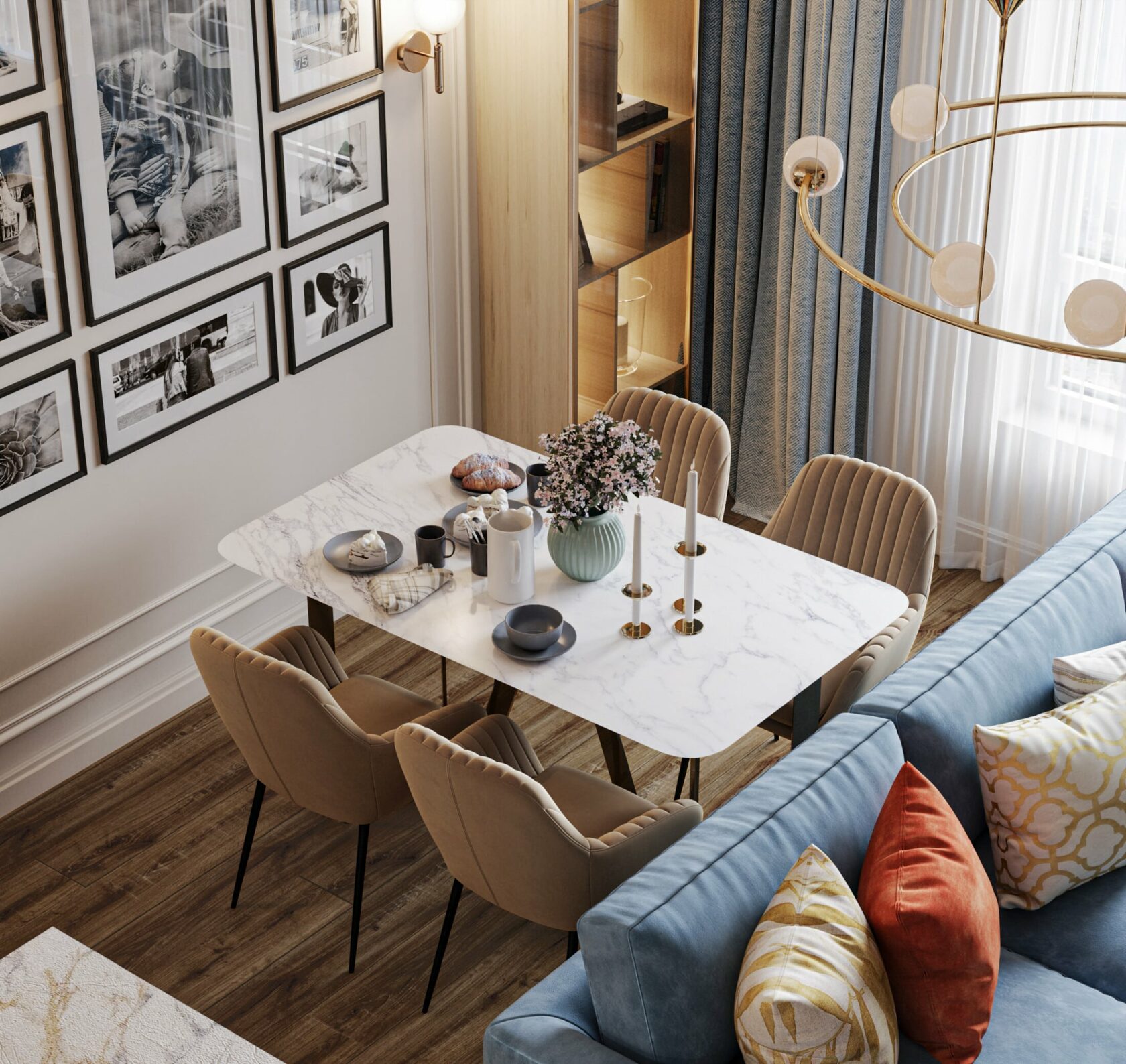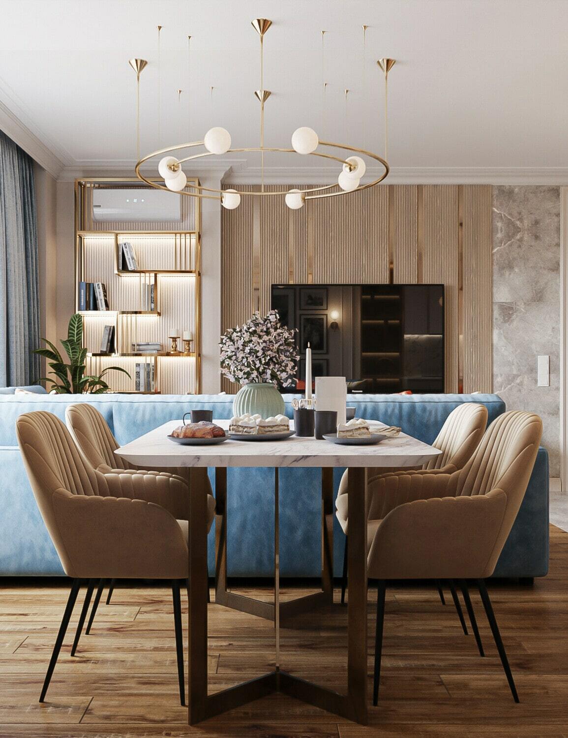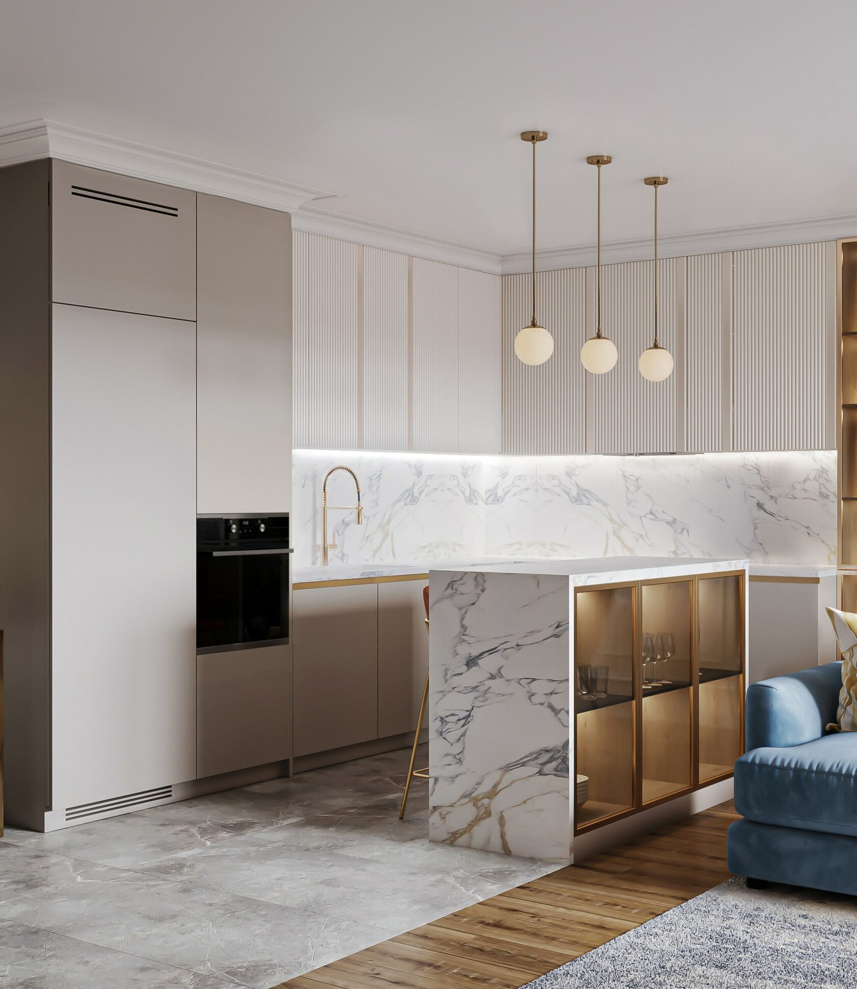 Интересная стояла задача задекорировать интерьер с отделкой от застройщика ПИК, на полу лежал керамогранит и ламинат, выполнена электрика, сантехника. Интерьер был безликим и пустым. Мы подобрали такую отделку, которая бы дополняла существующую и украшала интерьер, добавили изящные особенные акценты в интерьер, расставили дополнительное освещение и розетки с учетом существующих точек подключения, задекорировали крафтовыми панелями стены с изголовьем кровати, все это гармонирует с особенностями стен и функциональной расстановкой.