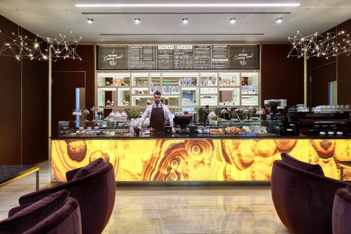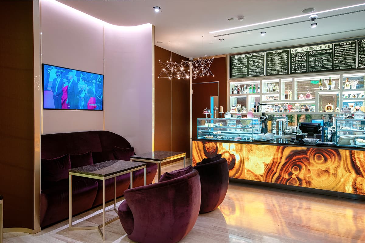 К задаче создать стильное, притягательное кафе в холле Mercury Tower наша команда подошла, как всегда, вдохновенно и креативно. Если удивлять посетителей, то по-настоящему и со вкусом.