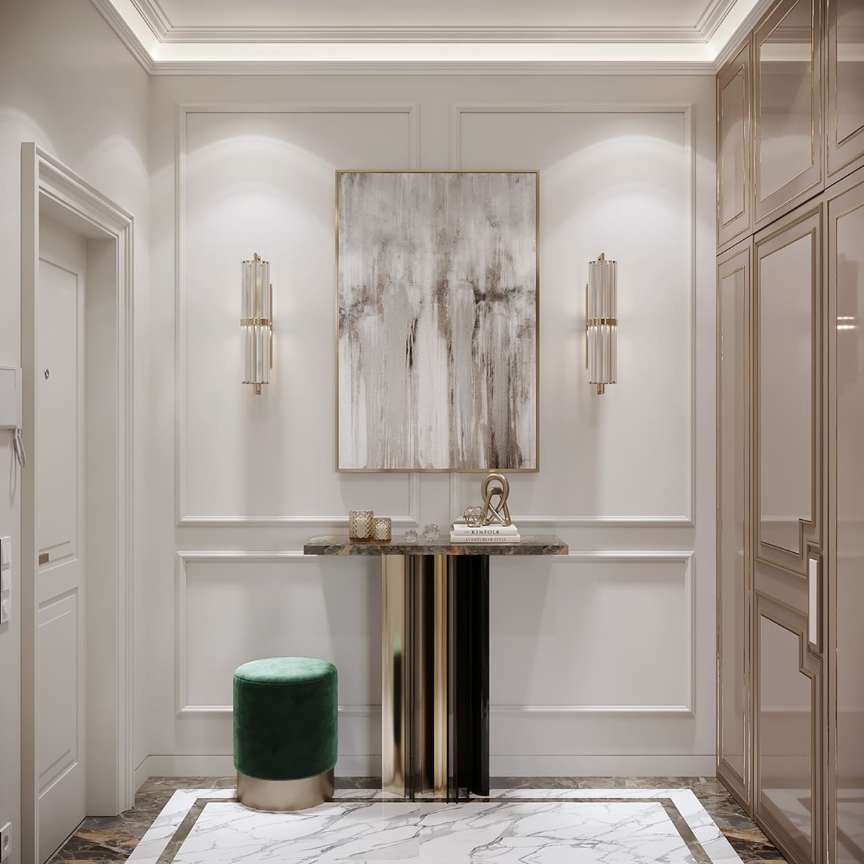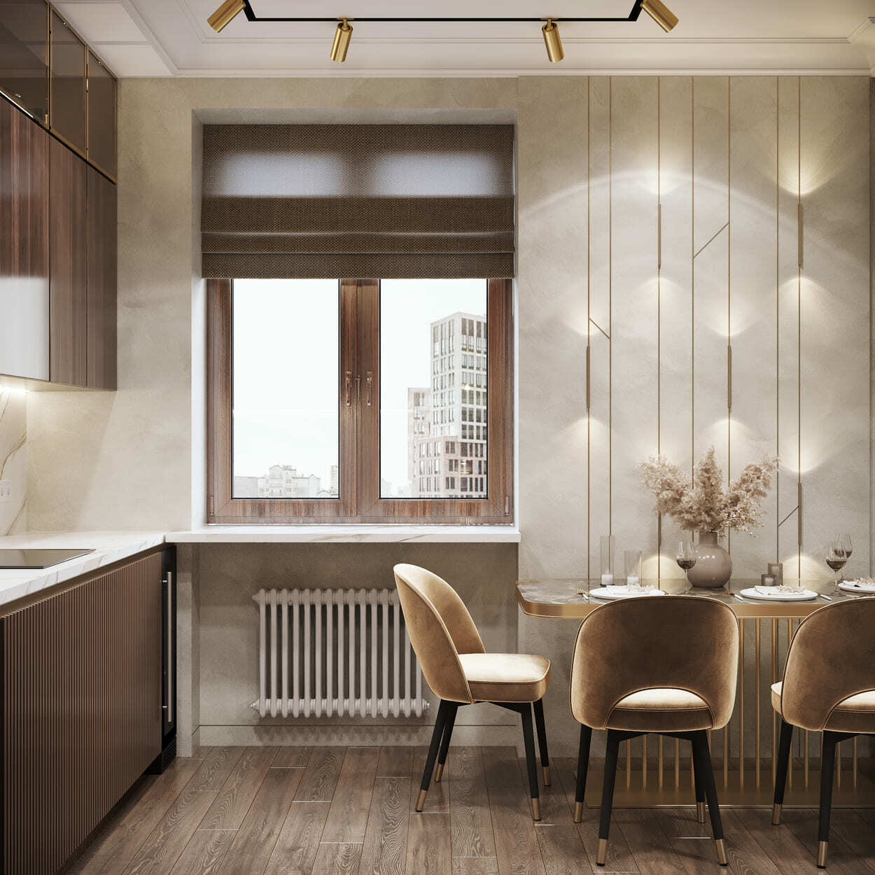 Для начала просто взгляните на эту квартиру-«конфетку». Шикарный вид, не так ли? А что, если мы скажем — это всё грамотно переработанный, «модернизированный» старый жилой фонд? Удивлены — оно и понятно. Данный проект позволил переосмыслить предыдущее жилое пространство и сделать его без всяких натяжек роскошным. И при этом нисколько не вычурным.