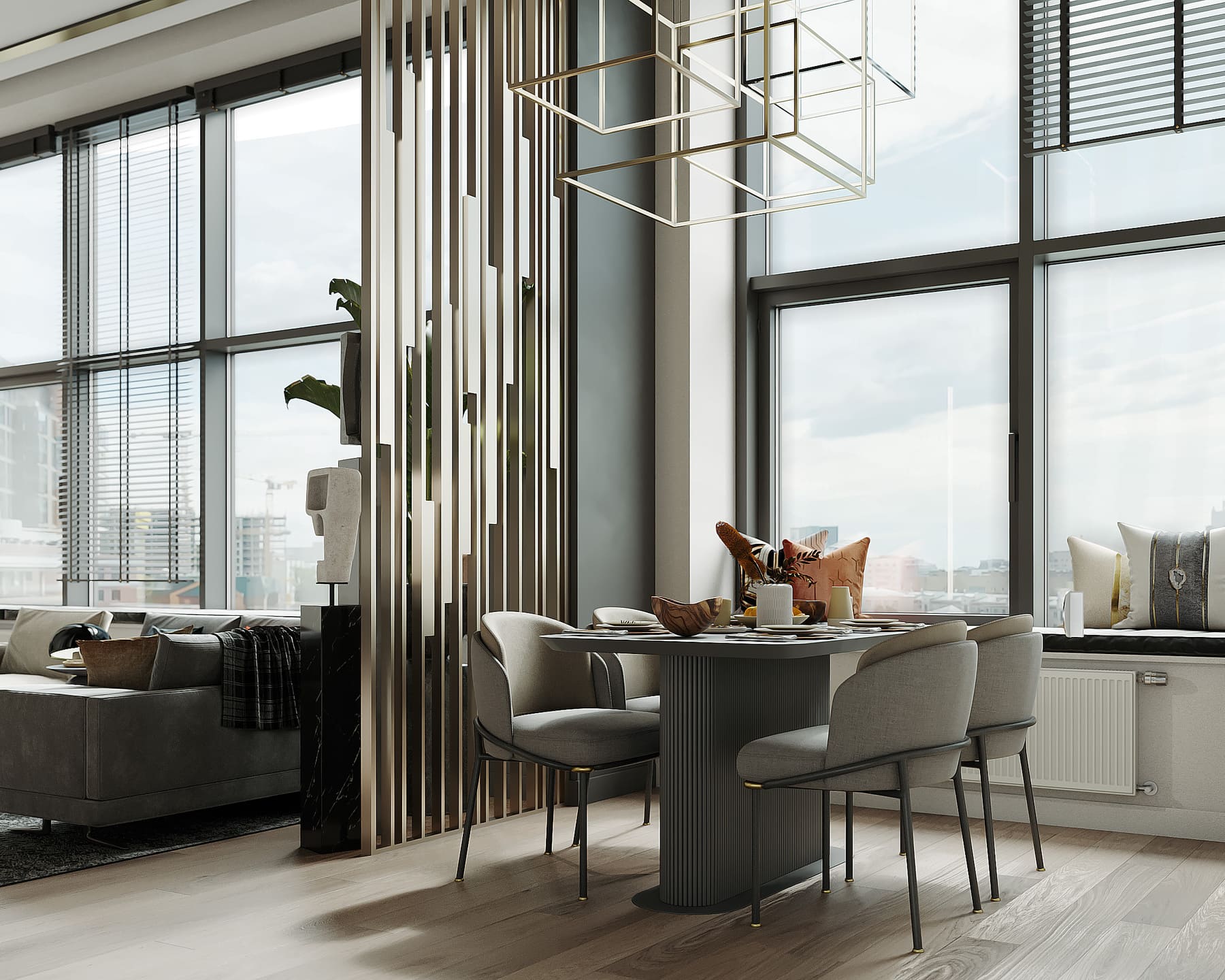 Фешенебельные апартаменты комплекса THE BOOK -синоним понятий «простор» и «свобода». Данная квартира уже была с готовой отделкой. Так что для нашей команды стояла амбициозная задача — разработать такую концепцию декорирования, которая грамотно бы подчеркнула уже существовавшие сильные стороны и добавила при этом индивидуальности. И всё это в рамках оговоренного бюджета. Ну что ж — вызов был принят.