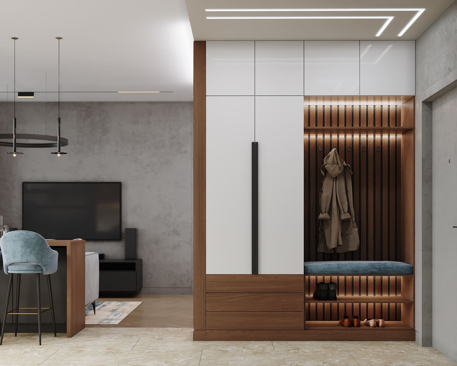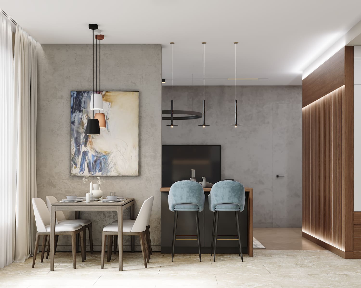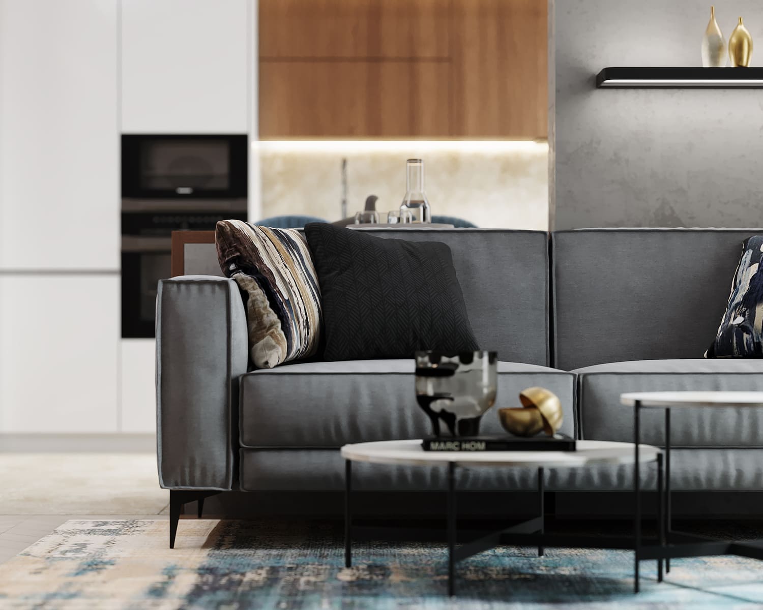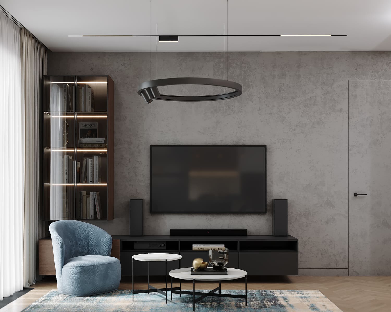 Этот проект для ЖК «Западный порт» оказался настоящим вызовом для нашей команды. В двухкомнатной квартире необходимо было сохранить баланс между строгим стилем, минимализмом и характерной мужской доминантой.