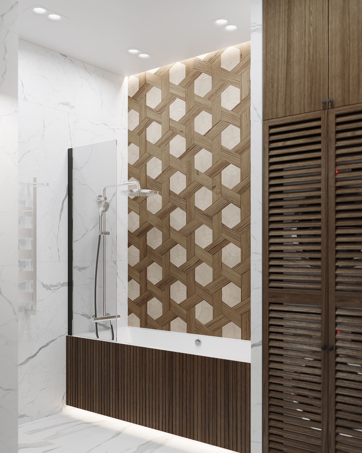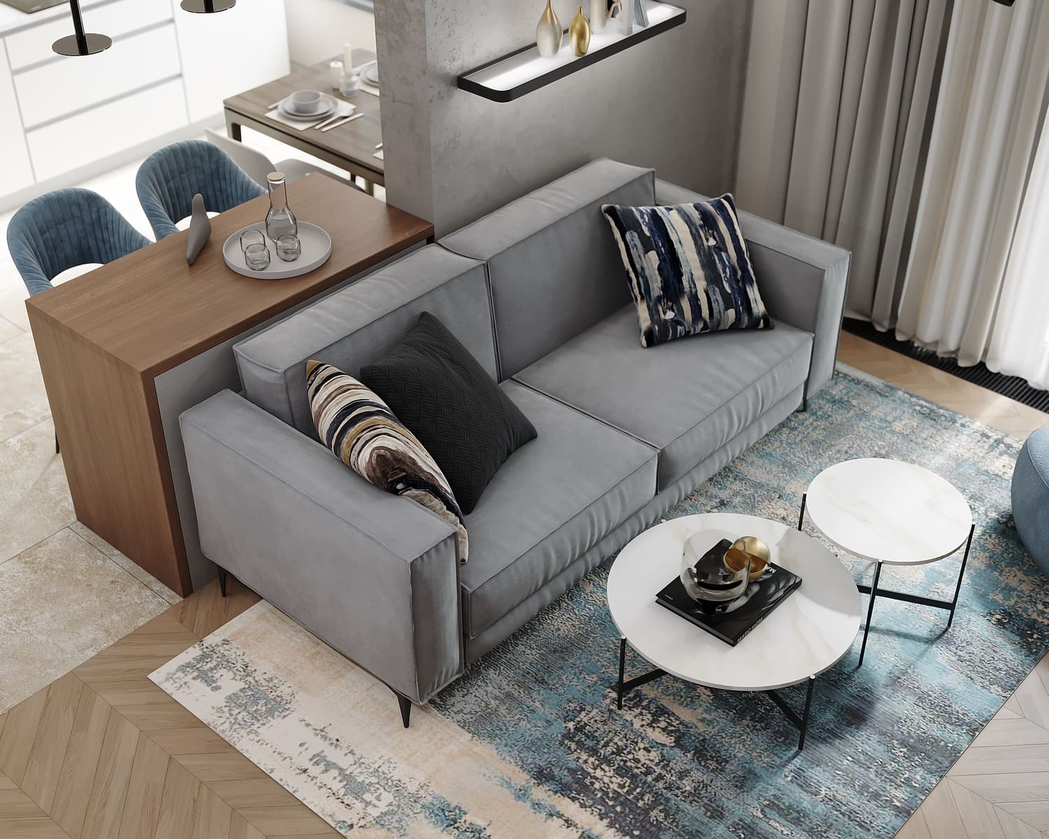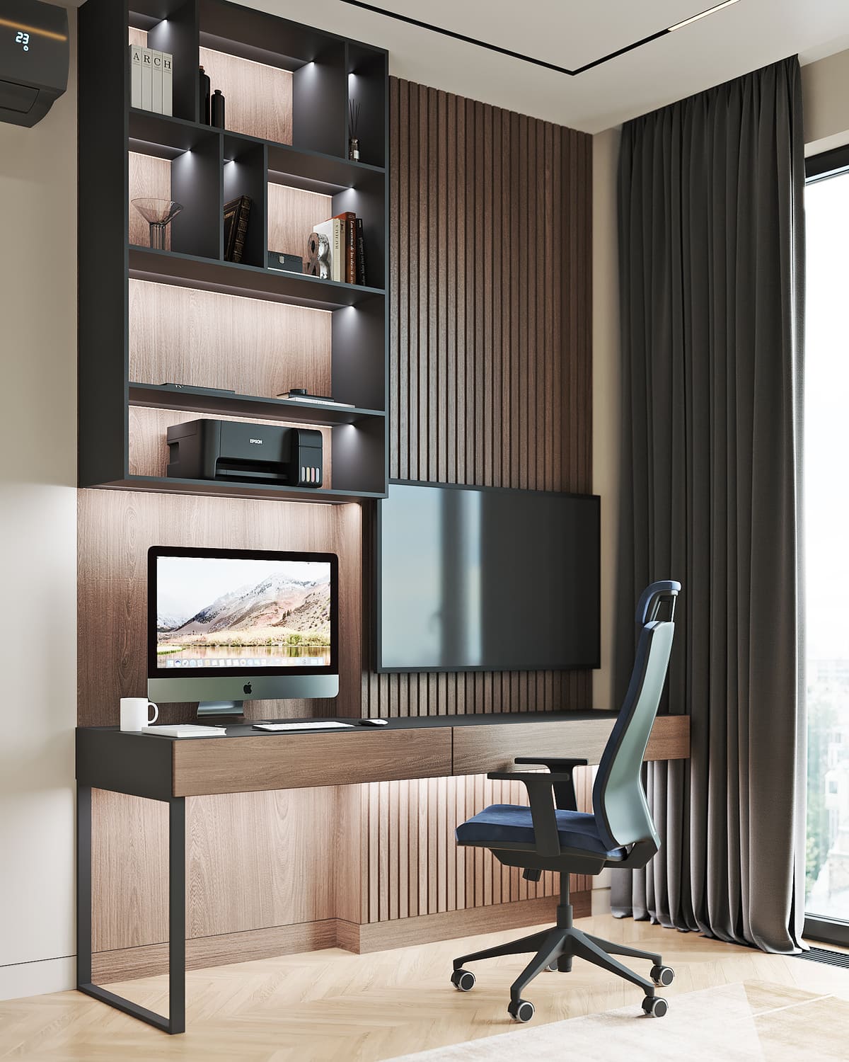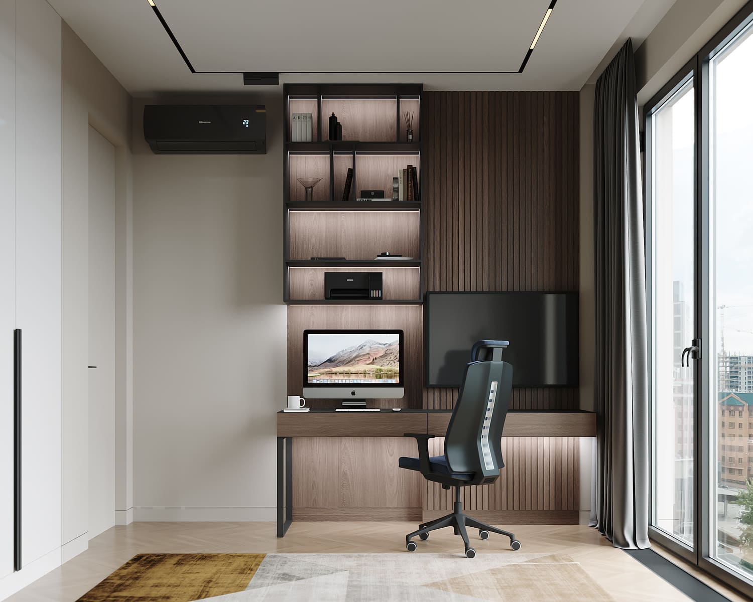 Этот проект для ЖК «Западный порт» оказался настоящим вызовом для нашей команды. В двухкомнатной квартире необходимо было сохранить баланс между строгим стилем, минимализмом и характерной мужской доминантой.