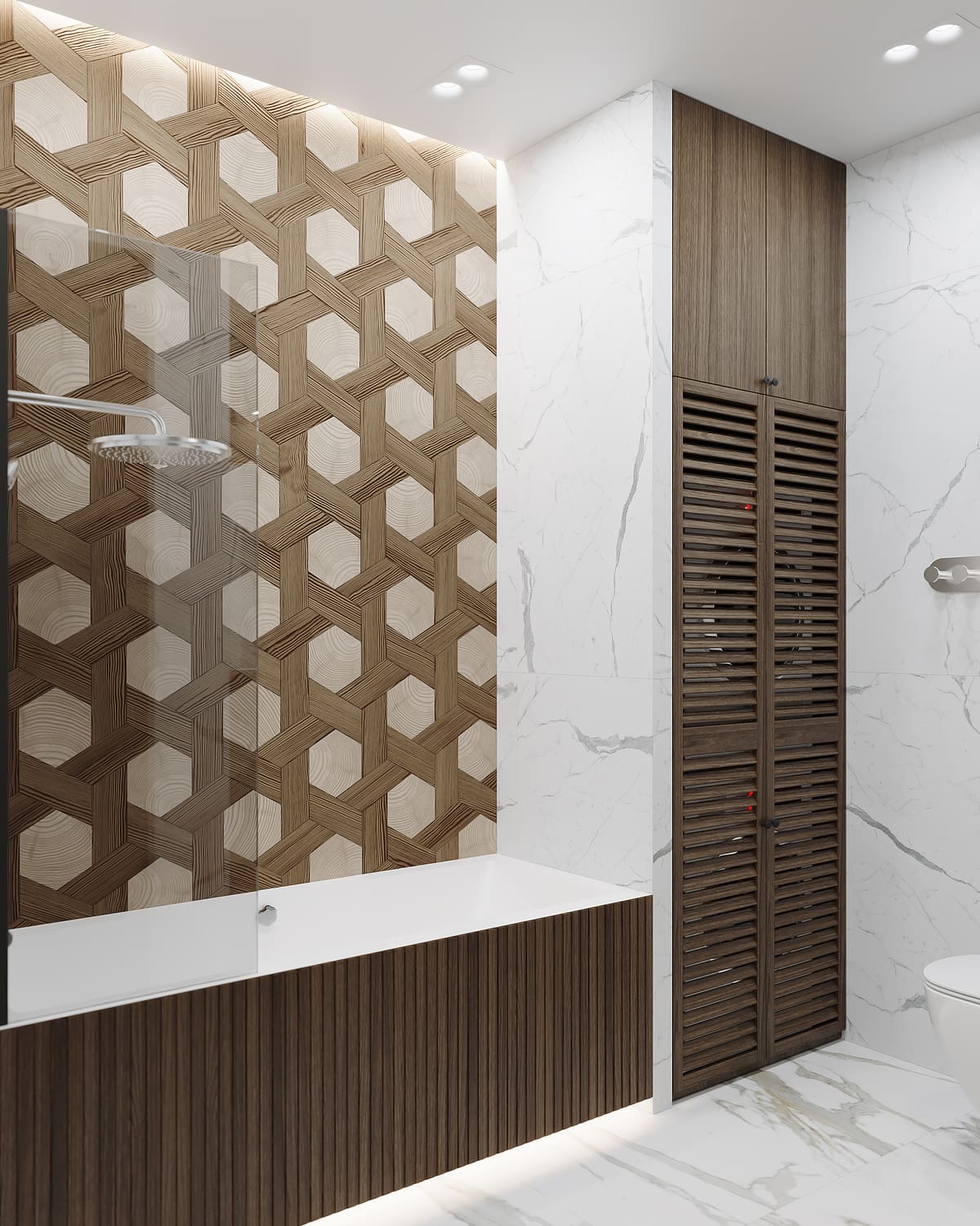 За минимализм «отвечают» графитовые, шоколадные и темно-серые оттенки в убранстве, которые, однако, точечно подчеркиваются сложно оснащенным освещением, декоративными элементами, которые привлекают внимание.